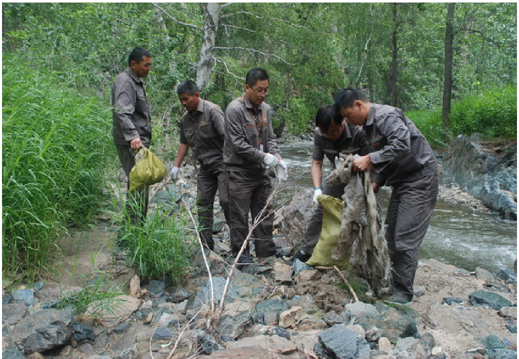 7月3日,冒着毛毛细雨,紫金矿业旗下阿舍勒铜业公司在副总经理田建磊的带领下,率公司各部门前往“一号点”,开展“保护草原、保护水源、从我做起”签名及环保主题实践活动。 “一号点”引水坝,距离矿区10公里,是公司生产和生活用水的源头,这里水的储量及水质好坏直接影响公司生产和生活。 阿舍勒铜业活动小组为“一号点”守水人带上慰问品,准备好拾垃圾的袋子,一路驱车从矿区出发,大家顾不上下千级“天梯”的劳累,便来到一号引水点河流两边,积极行动起来,大家不怕脏,不喊累,个个埋头苦干,挥汗如雨,有的两人一组合作,有的专门负责运倒垃圾,男同志还充分发挥担当作用,难去的,难捡的都争着干,抢着干,用了一上午的时间,将河流两边近两公里长林带垃圾全部拾干净并进行处理。 活动后,全体人员就地进行了“保护草原、保护水源、从我做起”签名仪式,同时倡仪: 1、不滥砍滥伐树木,不随意毁坏自然资源; 2、尽量节约纸张,不把没用完的笔记本随意扔进垃圾筒; 3、随手关紧关好水龙头,不浪费每一滴自来水; 4、尽量不使用一次性筷子; 5、不随地乱扔垃圾,特别是废旧电池及塑料袋; 6、不污染水资源,不把脏水、废水和有毒物质倒入河中,保护水中小生命; 7、随手关闭电源,人不在时不开启电灯、电视等家用电器,尽量节约每一度电; 8、不滥捕滥杀野生动物,与动植物和谐相处。