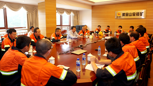 本网讯 5月17日,紫金矿业集团董事长陈景河在紫金山金铜矿主持召开大学生采掘工人代表座谈会。他强调,全面实施紫金矿业集团国际化战略,融入中华民族伟大复兴中国梦的实现,必须依靠国际化知识,必须依靠高端产业工人队伍。大学生采掘工人作为其中的重要部分,要紧跟时代、锐意进取,锤炼黄金矿业“工匠精神”,把自身事业前途与国家矿业发展紧紧联系在一起,埋头钻研“做自己”,胸怀鸿鹄“走出去”。