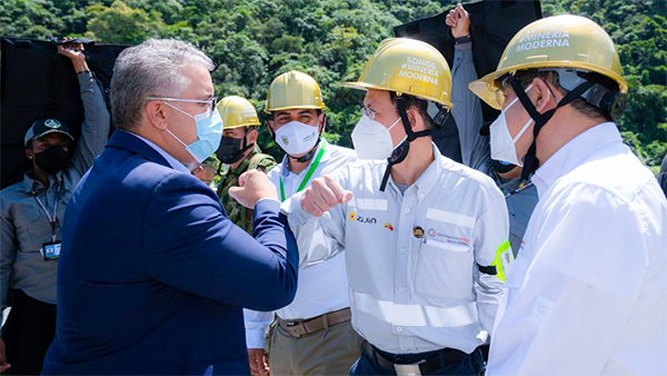 哥伦比亚总统伊万·杜克亲临仪式现场见证,中国驻哥伦比亚大使蓝虎、紫金矿业董事长陈景河向项目投产发表电视视频讲话,哥伦比亚能源部部长、环境部部长,安蒂奥基亚省省长、武里蒂卡市长,紫金矿业副总裁沈绍阳等出席典礼并致辞。