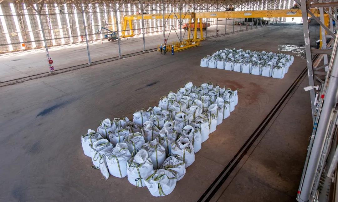 卡莫阿-卡库拉生产的超高品位、清洁铜精矿,装袋后准备发往国际市场
