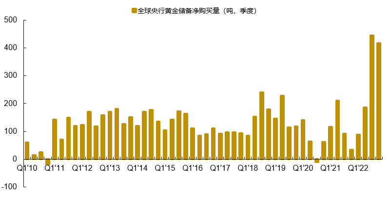 图表4:2022年各国央行黄金储备金购买量情况一览(资料来源:世界黄金协会、中金公司研究部)