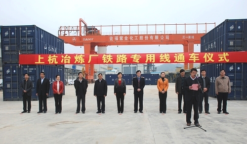 上午9:48分,南昌铁路局龙岩车务段段长王道声代表南昌铁路局宣布上杭冶炼厂铁路专用线正式通车。随着一声发车令,披红挂彩的火车,汽笛长鸣,在上杭冶炼厂铁路专用线上徐徐向前行驶,开辟了红土地新的征程,开启了上杭老区人民又一个新的梦想。
