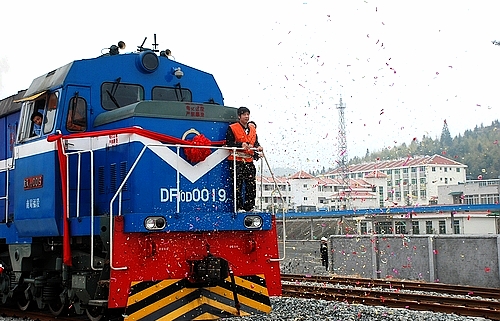 本网讯 1月25日上午,上杭冶炼厂铁路专用线举行通车仪式。南昌铁路局龙岩车务段段长王道声、龙岩市铁办书记项建坤、县领导邓菊芳、陈学良、陈永河、蓝建杭、古蛟新区党工委书记蓝凯英、紫金矿业副总裁林泓富、总裁助理黄孝隆,县直有关部门、代建单位、施工单位、监理单位负责人及参建员工代表等参加了通车仪式。