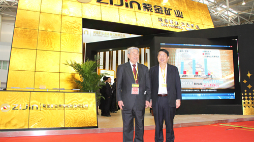 开幕式后,姜大明兴致勃勃地来到紫金展厅,高兴地询问紫金矿业发展情况;中国工程院院士裴荣富先生专程找到紫金展厅,高兴地了解紫金的最新进展,并与陈景河董事长合影留念;加拿大矿业公司、渣打银行、普华永道等企业代表纷纷来到紫金集团展区,并与陈景河董事长、蓝福生副董事长等见面会谈。