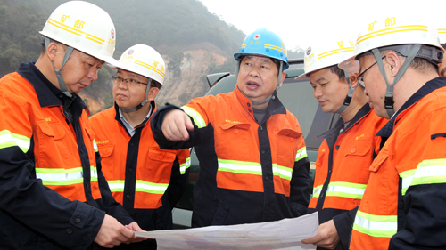 3月3日上午,紫金矿业集团董事长陈景河率建设部、环保部、安全部、生产运营部、人力资源部等职能部门负责人调研紫金山金铜矿。