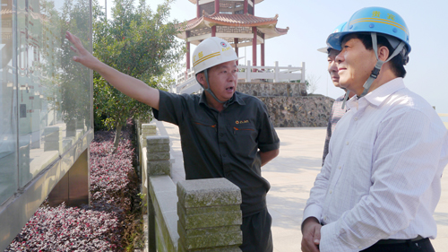 考察组参观了紫金山国家矿山公园、露天采场。在麒麟顶观景台,考察人员纷纷用手机拍下露采现场壮观的作业场面,孟令峰在俯瞰铜矿湿法厂全貌时,对紫金山的规模表示震撼。