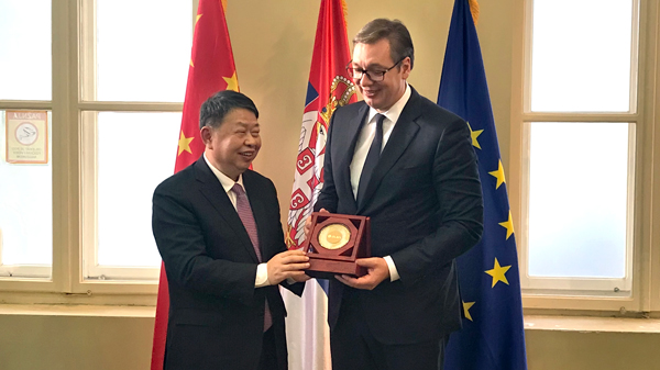 本网讯 9月28日,塞尔维亚共和国总统武契奇在该国尼斯市会见了紫金矿业董事长陈景河,双方就紫金矿业投资开发塞尔维亚矿业项目事宜进行了坦诚友好的交流。