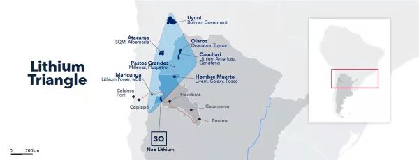 南美“锂三角”及3Q项目区位图