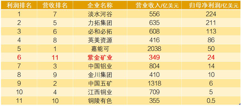 本网讯 8月3日,2022《财富》世界500强发布,总榜以营业收入为排名依据,紫金矿业位列407名,较2021年排名大幅跃升79名。若按归母净利润排名,紫金矿业位居总榜第276名,及全球有色金属矿企第6、中国有色金属矿企第1,也是全球唯一上榜的黄金企业、排名提升最多的有色金属矿企。