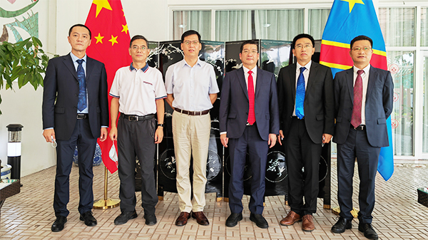 中国驻刚果(金)大使朱京(左三)会见邹来昌总裁(右三)
