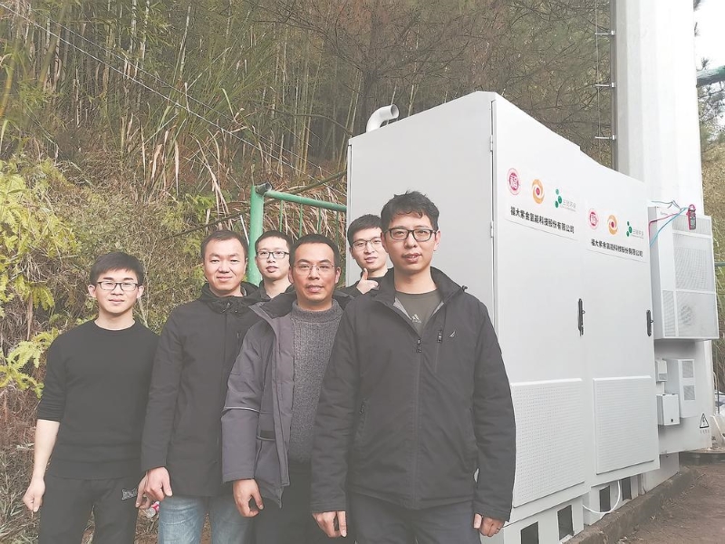 2021年底,福大紫金氢能迅速抽调来自学校和企业的技术、管理人员组建团队,为公司的第一个项目——通信基站用“氨-氢”燃料电池发电站的启动做准备。“我们来到革命老区龙岩一座高山上的4G基站做这个项目,组织了十多人开展三个月的工业测试,在山林里搭棚,吃住在山上,在野外条件下全天候作业,福大年轻优秀的老师和我们企业人员一起开展这项工作,春节期间也不停不歇。”张卿说。