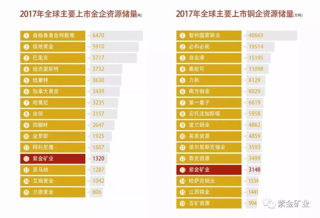 保有黄金资源储量1320吨,铜资源储量3147万吨,锌资源储量783万吨;矿产金产量高峰时达到42.55吨,铜产量20.8万吨,锌产量27万吨。金、铜、锌产量、储量均居中国行业前三甲。