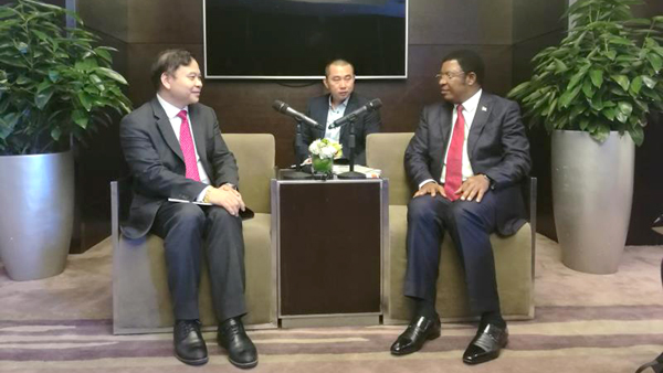 坦桑尼亚驻华大使姆贝尔瓦·凯鲁基及多位政府部门高官参加会见。