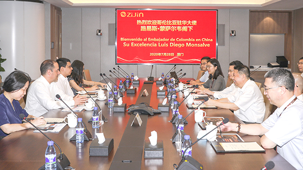 本网讯 7月28日,哥伦比亚驻华大使路易斯·蒙萨尔韦与紫金矿业董事长陈景河在厦门举行会见。