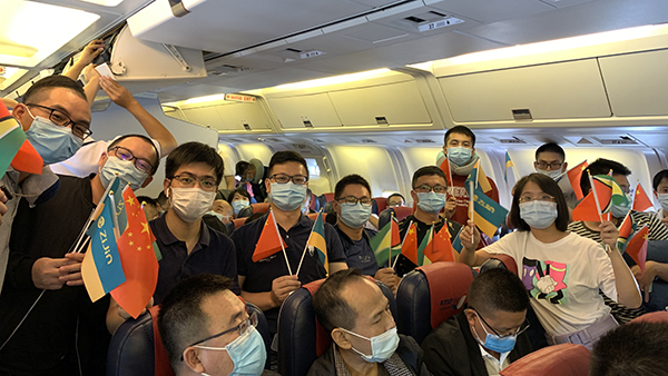 本次包机工作由紫金矿业、中国港湾、中国电建及中国政府派圭亚那医疗队联合实施,所有赴圭人员在飞机上度过了难忘的国庆和中秋佳节。