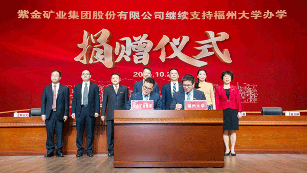 本网讯 10月26日晚间,紫金矿业继续捐赠1500万元支持福州大学办学举行了签约仪式,本次捐赠主要用于紫金科研楼扩建、教学科研条件改善以及高素质师资力量引进,以助力福州大学加快建成世界一流的东南强校。