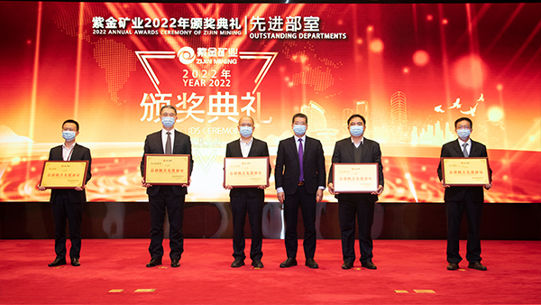 本网讯 1月19日,紫金矿业隆重举办2021年度先进集体和个人颁奖典礼暨先进事迹宣讲会,表彰2021年度公司先进集体和个人、优秀协(合)作单位和个人,颁发ESG优秀实践奖、抗疫突出贡献奖。