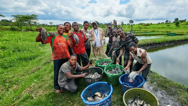 社区人员收获罗非鱼