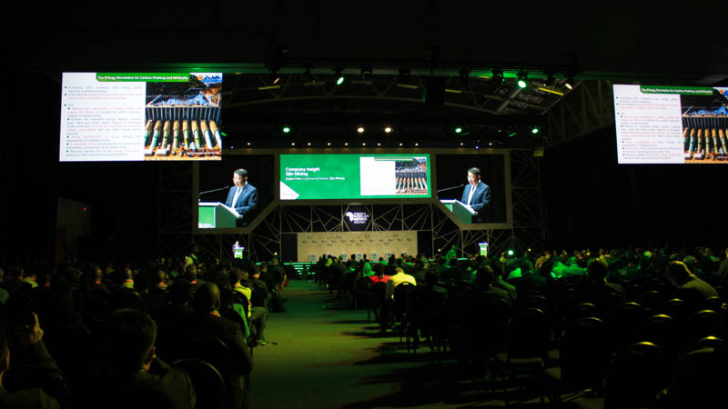 陈景河分享了紫金矿业的发展概况、发展规划和战略目标,重点介绍了紫金在非洲的重要矿山及铜、锂新能源板块核心项目。他指出,控制气候变暖及减少碳排放成为国际共识,掀起了新一轮能源革命,给全球矿业发展带来新的广阔前景。发展清洁能源、推动低碳转型,是紫金矿业应对全球气候变化所作出的战略选择和积极行动。公司已全面加大铜、锂等为代表的新能源矿产投资,力争成为全球重要的铜、锂等新能源矿产供应商,在此基础上,将适度发展可再生能源产业,并结合智能矿山建设,通过全面生态建设,推进自然碳汇,深入践行公司《应对气候变化行动方案》,实现公司所承诺的2029年碳达峰、2050年碳中和目标。