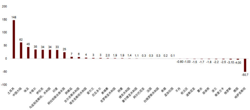 图表4:2022年各国央行黄金储备金购买量情况一览(资料来源:世界黄金协会、中金公司研究部)