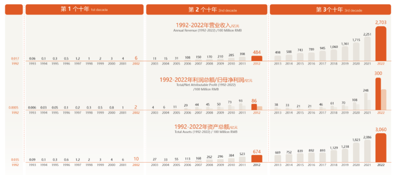 在紫金矿业30周年庆祝大会上,陈景河董事长把紫金三十年划分为三个十年。从发展指数看,紫金跨越发展的第三个十年,正是“一带一路”倡议提出以来的十年,数据显示,十年来,紫金矿业营收增长了5倍多,利润总额增长了近8倍,市值增长了3倍多,资产规模、营收、市值连续突破千亿、两千亿、三千亿大关,经济效益连续多年保持行业领先。