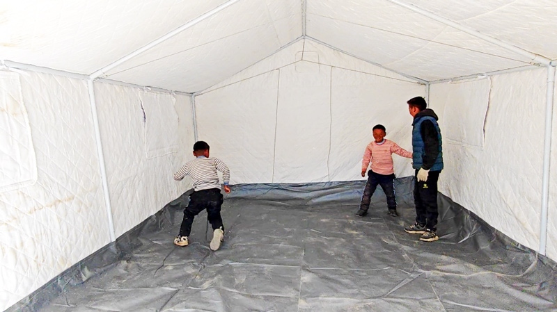 紫金矿业救援队伍为地震灾区群众搭建御寒帐篷