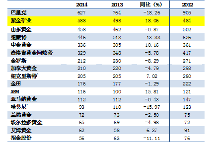2014:紫金矿业净利润全球第二 多项指标国内居首