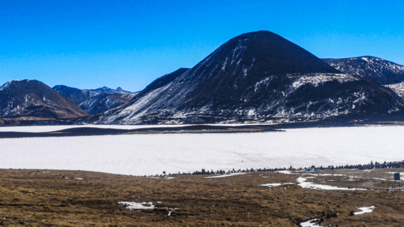 结冰的思金拉措湖