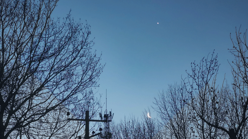 住宿区凌晨7点的月亮和启明星