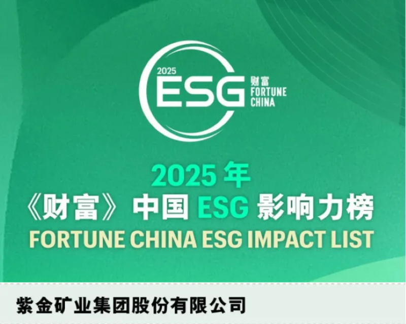 5月16日,2025年《财富》中国ESG影响力榜公布,紫金矿业凭借在改善环境、保护员工、支持社区等方面的工作成效上做出的卓越努力,首次荣登榜单。